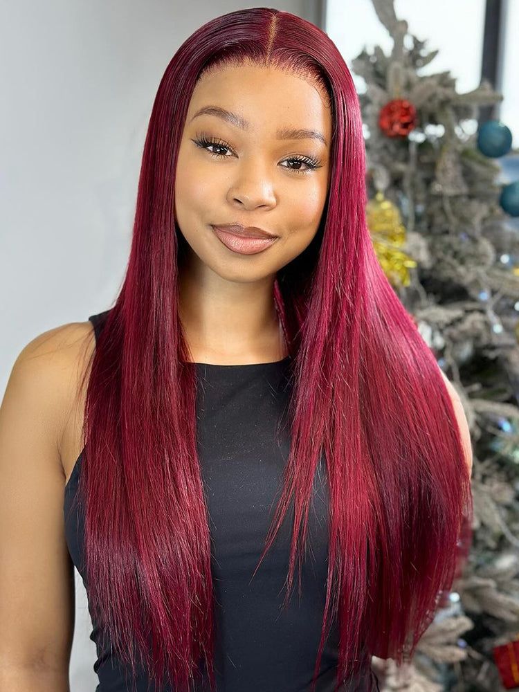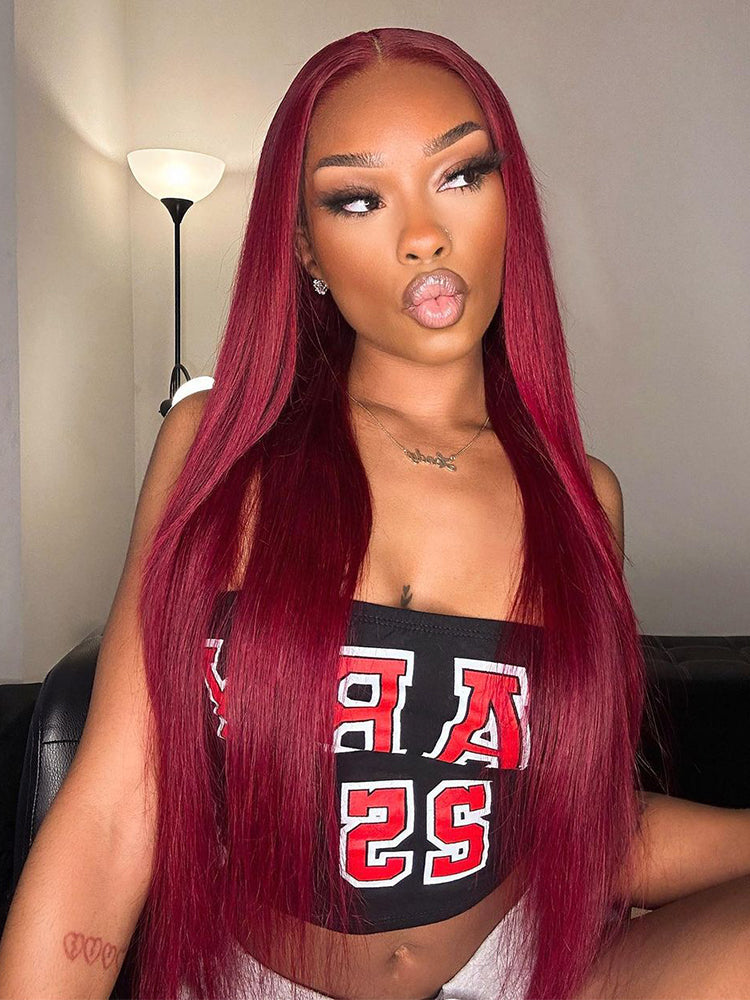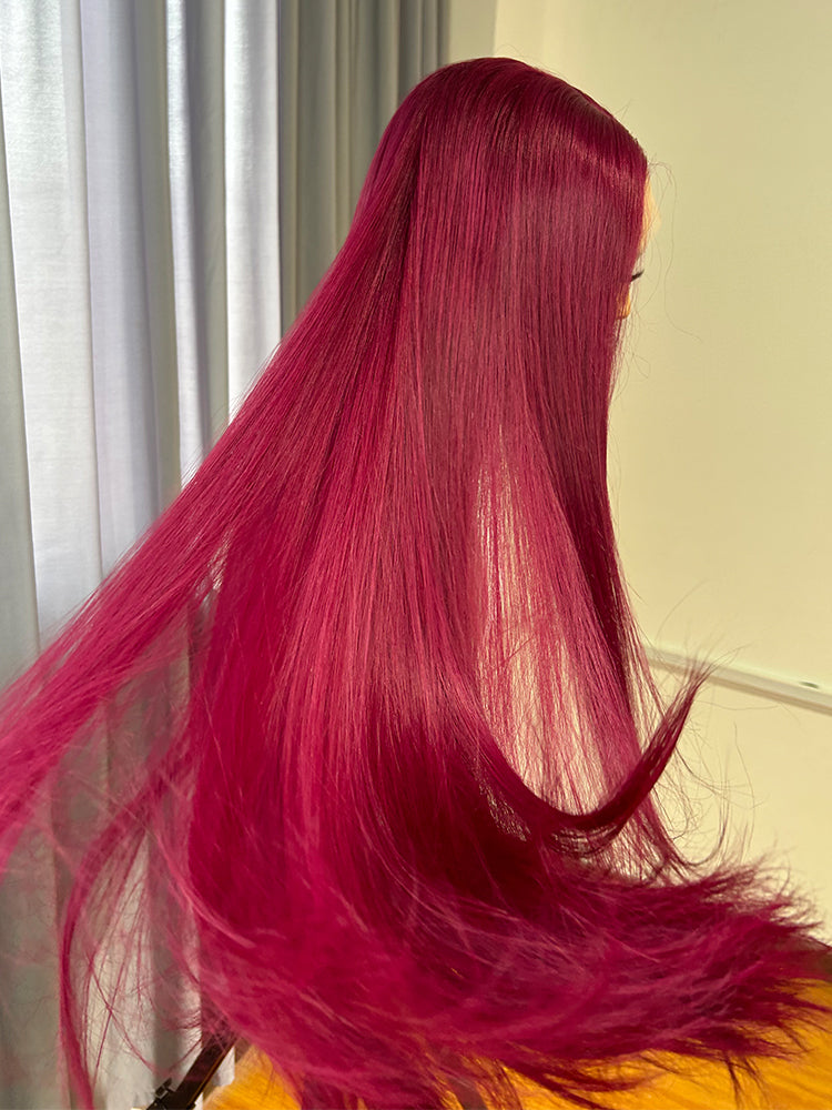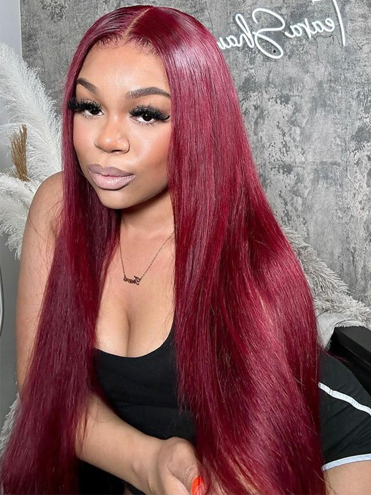 99J Burgundy Straight Thin LY Lace Front Wig Wine Colored Human Hair Wigs