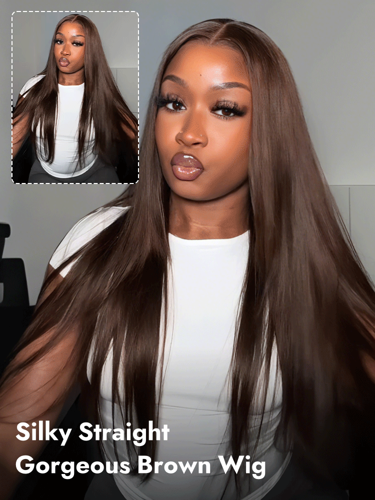 Dark Brown HD Lace Front Wig #4 Color Straight Human Hair Wig