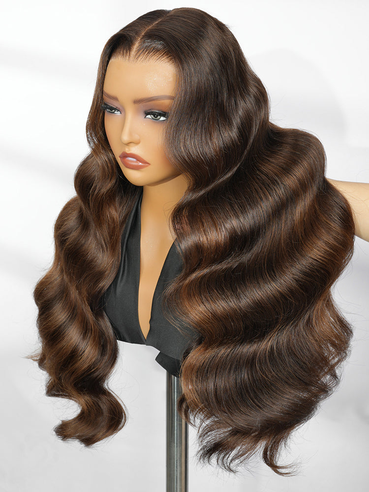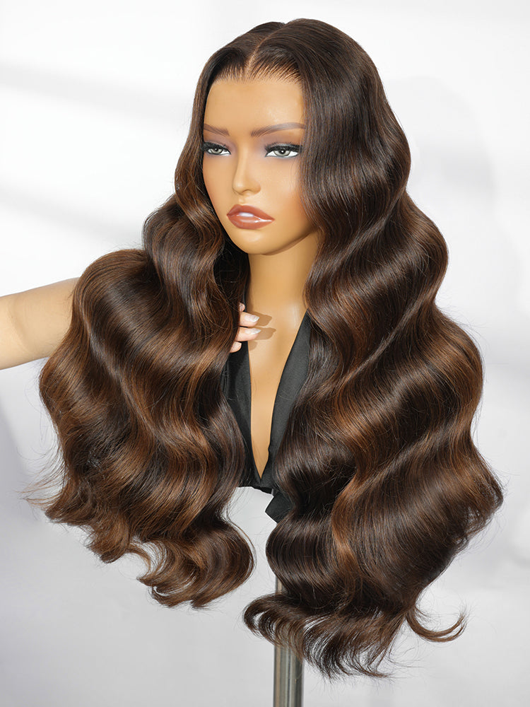Dark Brown With Highlights Big Loose Wave 13x4 Frontal Wigs Full Density