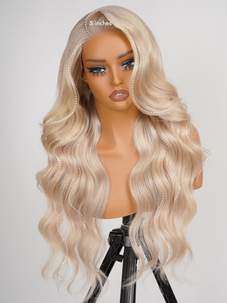 613 Blonde 5x5 Closure Wigs Blonde Body Wave Wigs 14-30 Inch With Transparent Lace