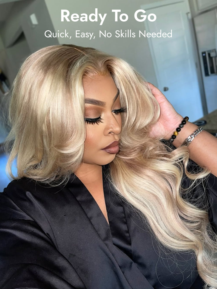 Ready And Go Wigs #P18/613 Light Blonde Glueless Human Hair Wigs With Lowlights