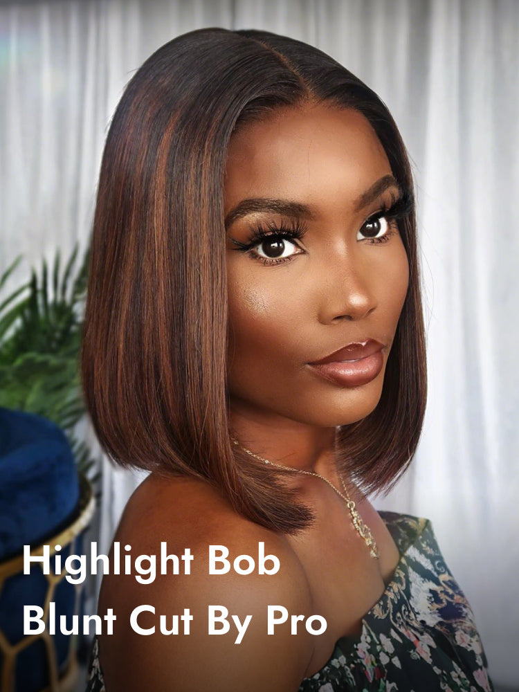 Highlight Bob Wig Pre-Colored Straight Blunt Cut 7x5 Glueless Closure Wigs