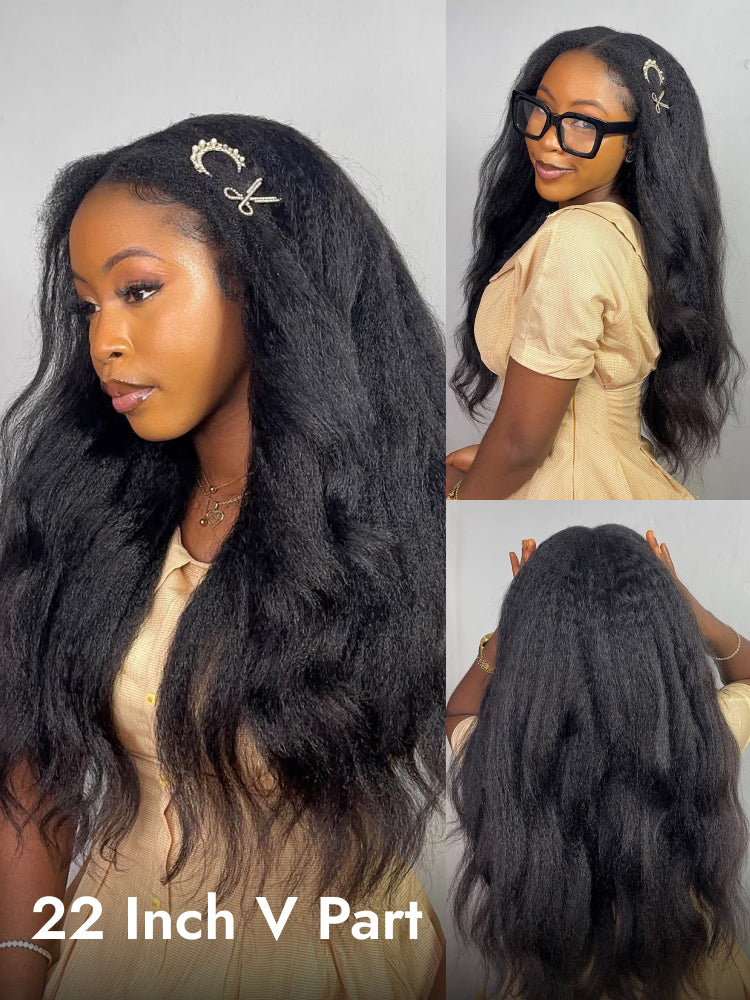 Kinky Straight U Part Wigs Human Hair Yaki V Part Wigs