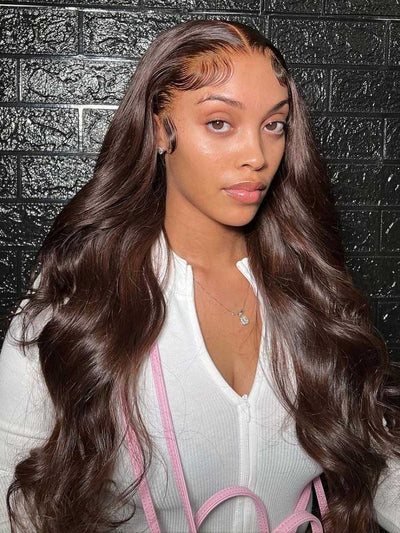 #4 Dark Brown Wigs Body Wave Chocolate Brown Human Hair Lace Front Wigs