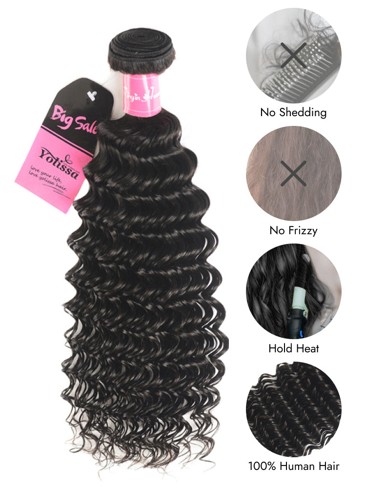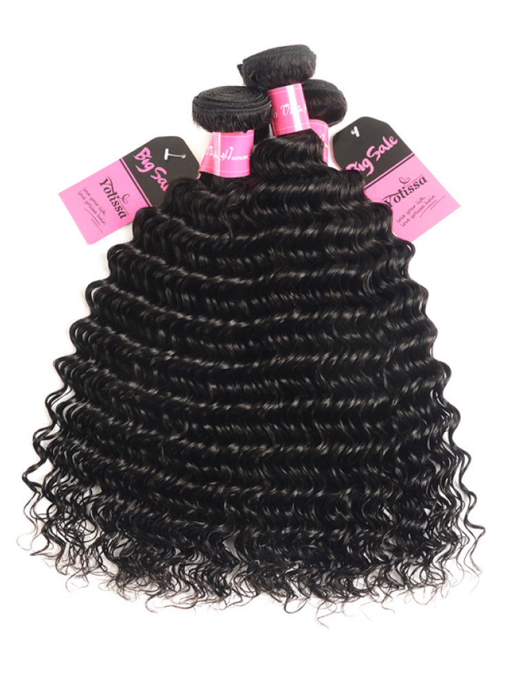100% Human Hair Natural Black Deep Wave Bundles 1pc 3pcs/Pack