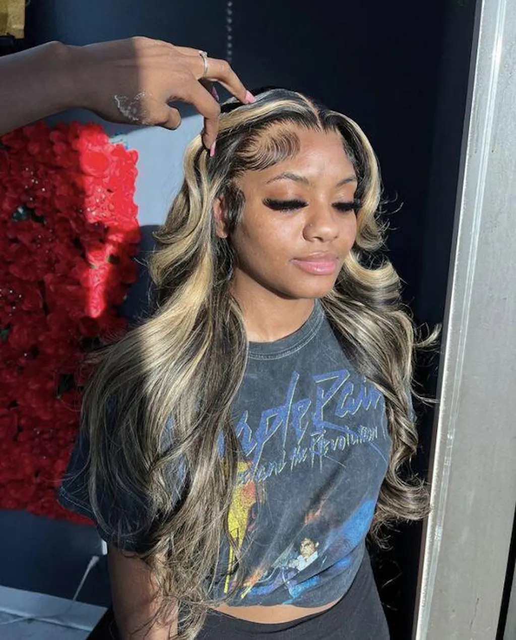#1B/613 Black And Blonde Wigs Straight And Body Wave Blonde Highlight Lace Front Wigs