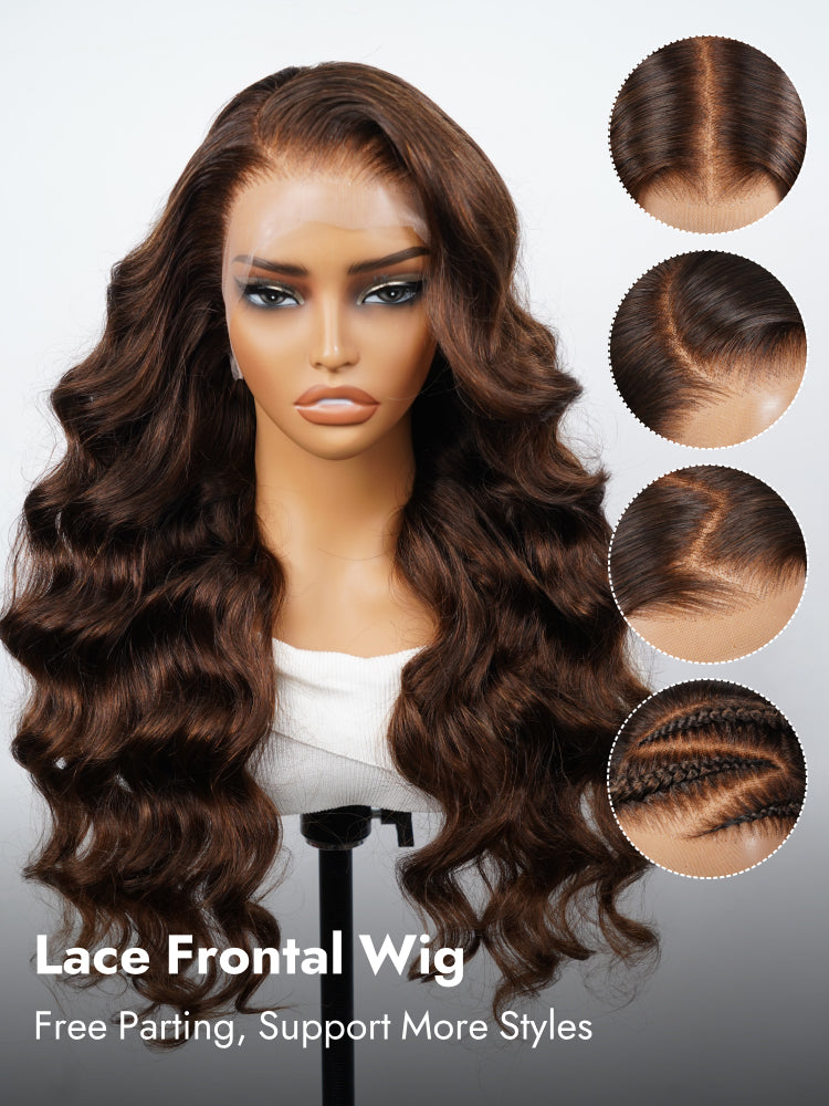 #4 Dark Brown Wigs Body Wave Chocolate Brown Human Hair Lace Front Wigs