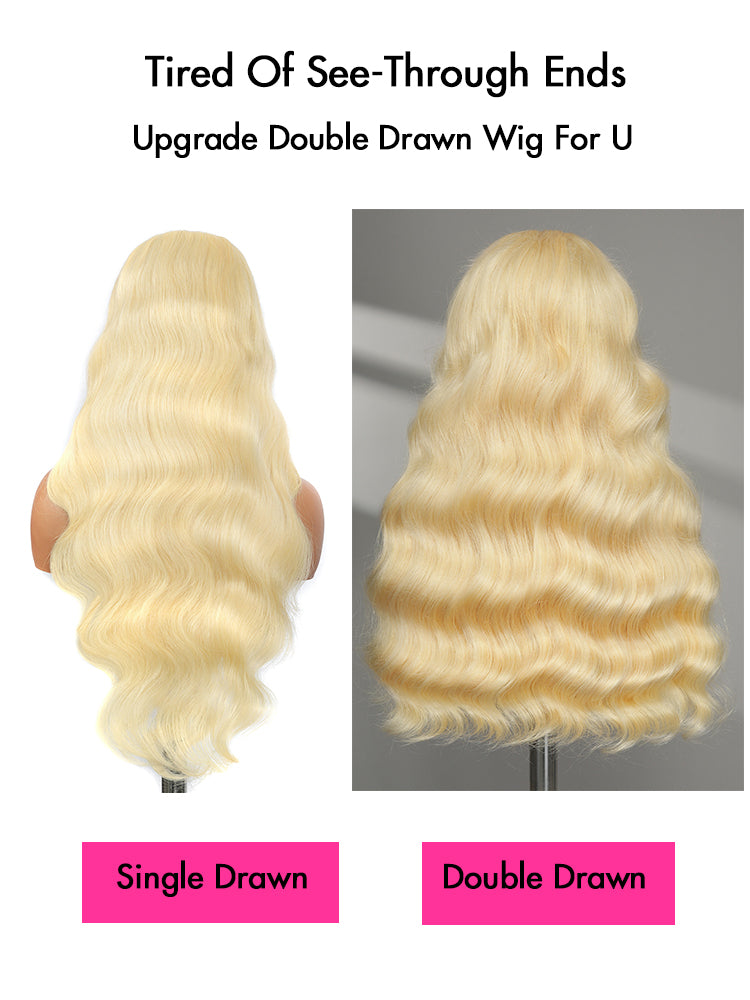 #613 Blonde Double Drawn Wig Straight and Body Wave Real HD Lace Closure Wigs