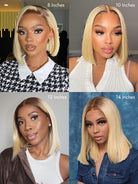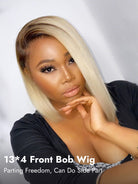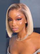 #4/613 Straight Short Blonde Bob Hair Blonde Ombre Wig With Dark Brown Roots