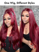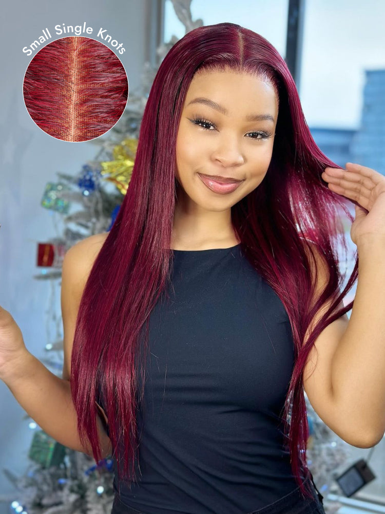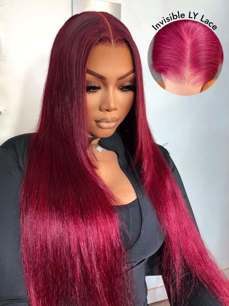 99J Burgundy Straight Thin LY Lace Front Wig Wine Colored Human Hair Wigs