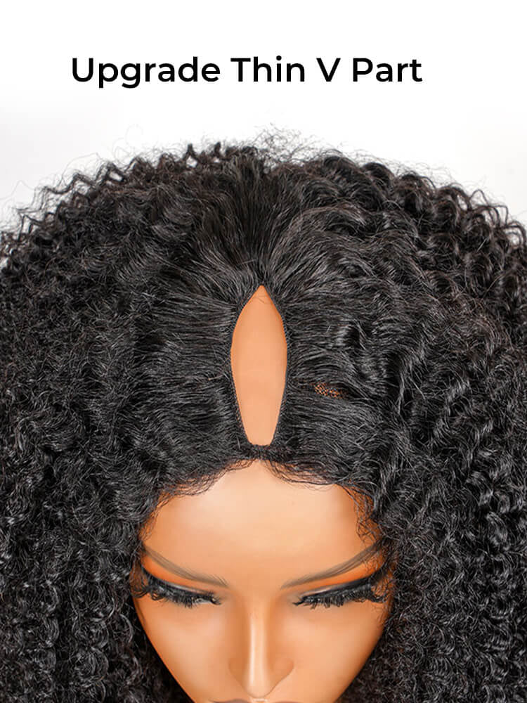 Afro Kinky Curly V Part Wig No Leave Out Human Hair Wigs