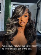 PRODUCT | Black With Blonde Highlights Wig Layered Wavy 6x8 13x6 Lace C Part Frontal Wig |