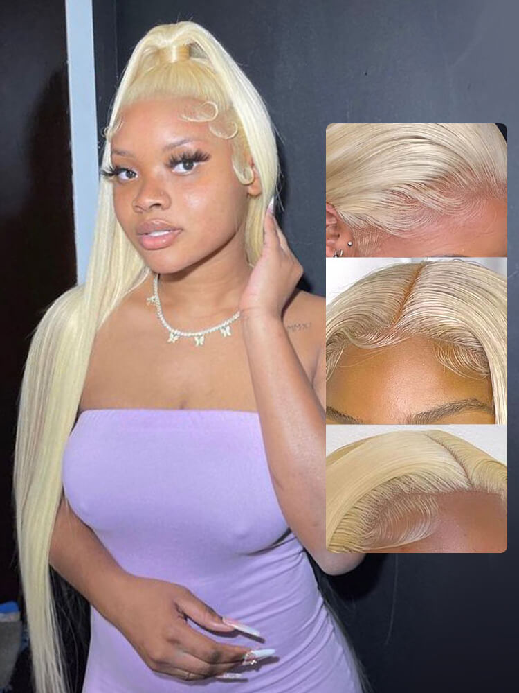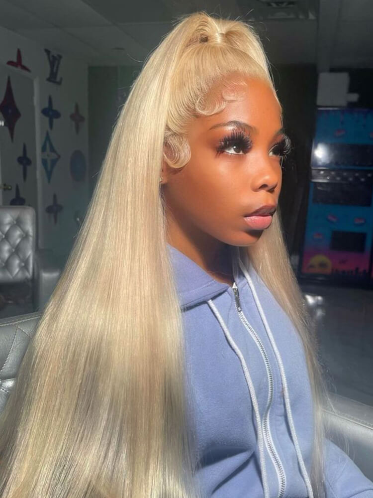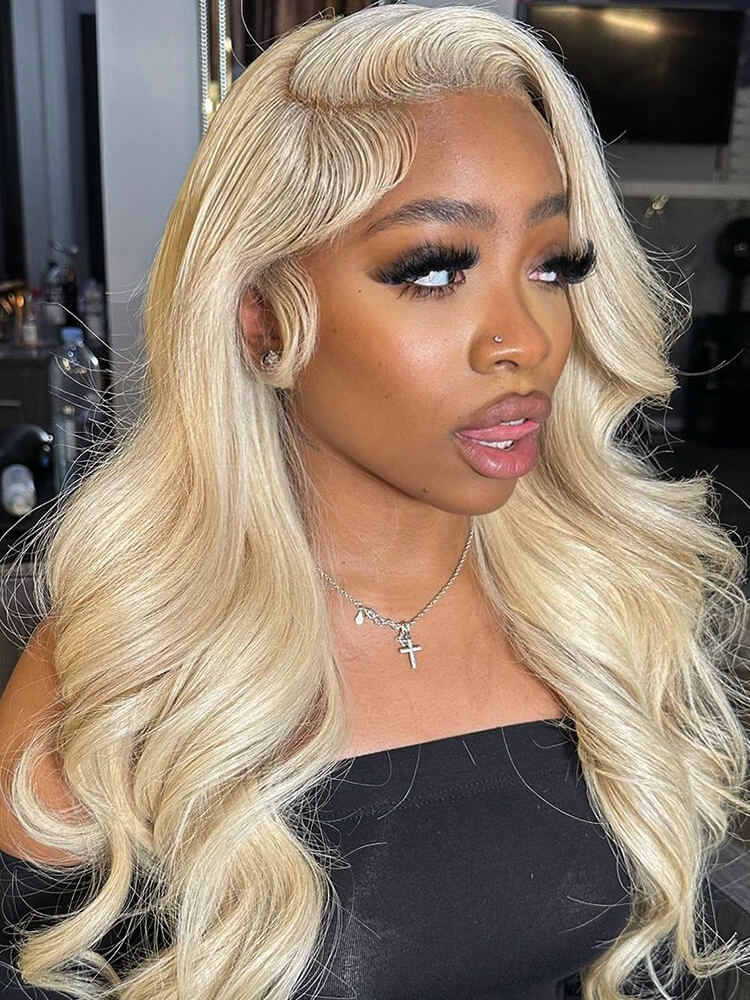 Blonde Human Hair Full Lace Wigs #613 Color Straight And Body Wave Wig
