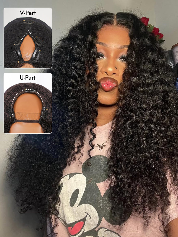 Burmese Curly V Part Wig With Spiral Ends Glueless U Part Wig