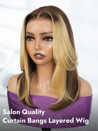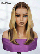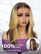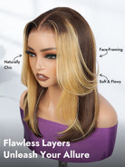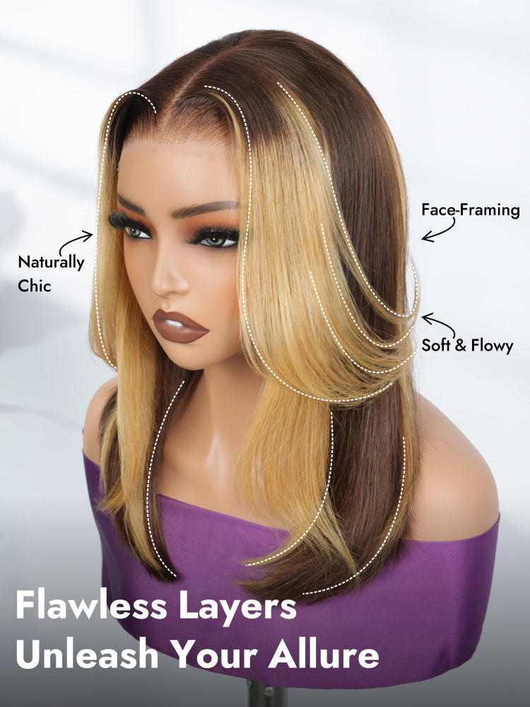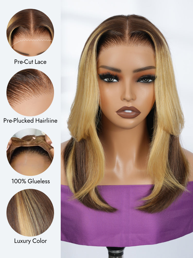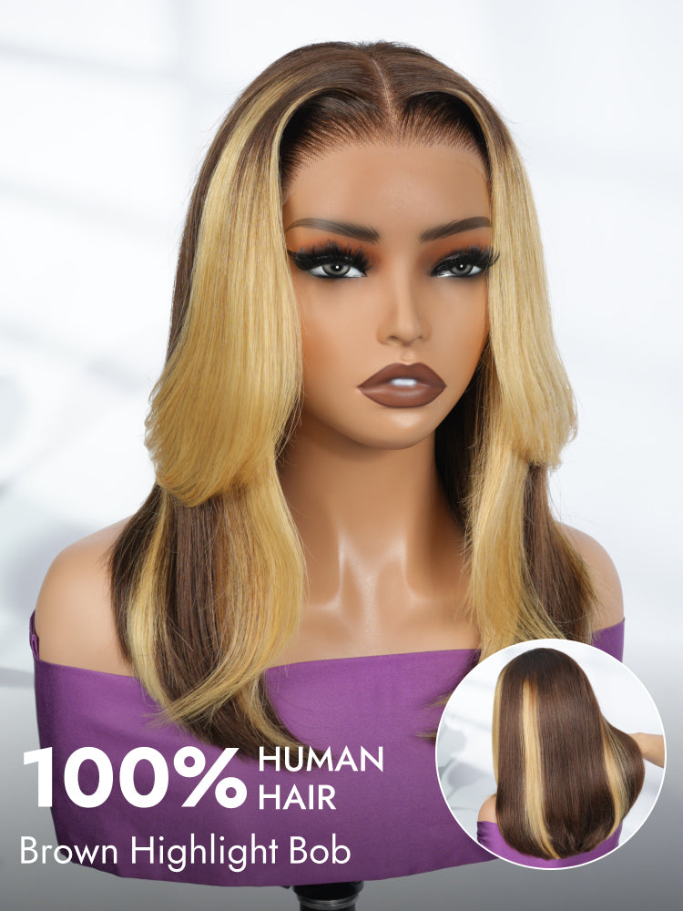 Butterfly Cut Highlight Bob Wig 7x5 Pre Cut Lace Wigs With Honey Blonde Highlights Streaks
