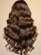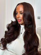 PRODUCT | Dark Brown Layered Wavy Hair Glueless Pre-Cut 7x5 Lace Wig With Curtain Bang |