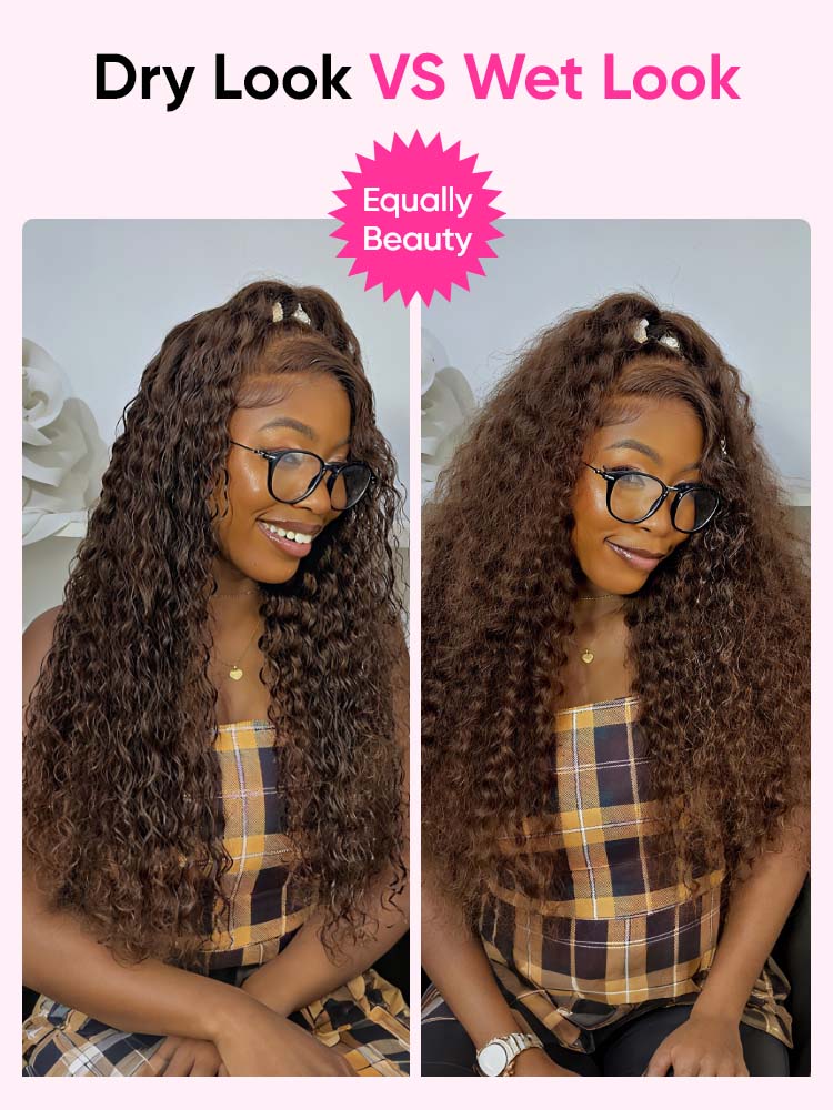 Glueless Brown Water Wave Hair Wigs Invisible Knots Ready To Go Wig