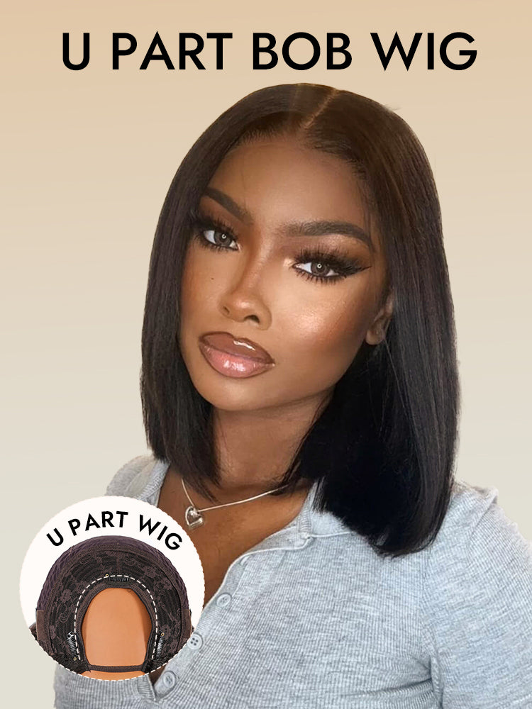 Flash Sale Glueless Straight Bob 14 Inch U Part Wig Human Hair