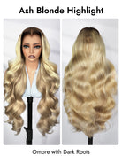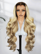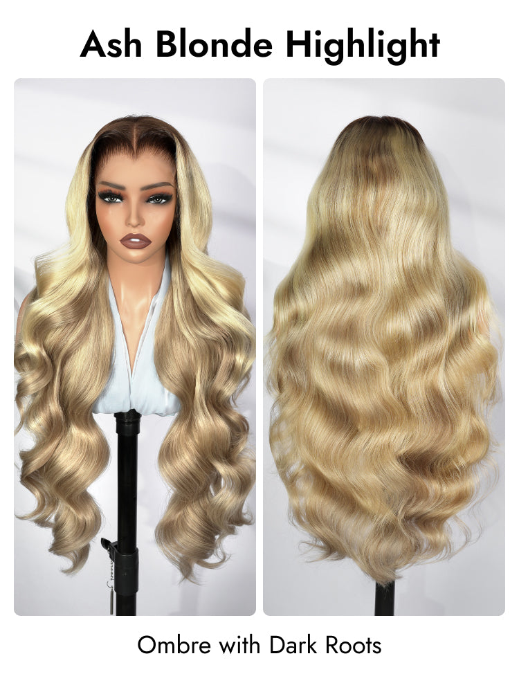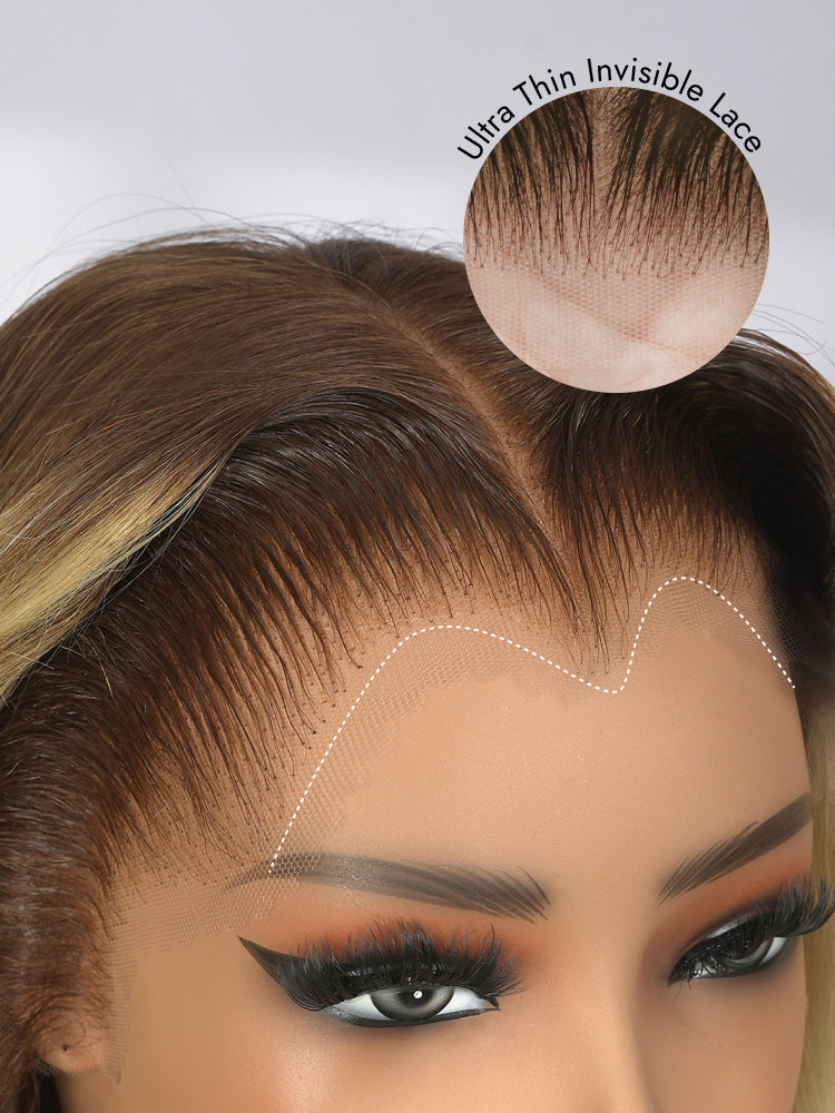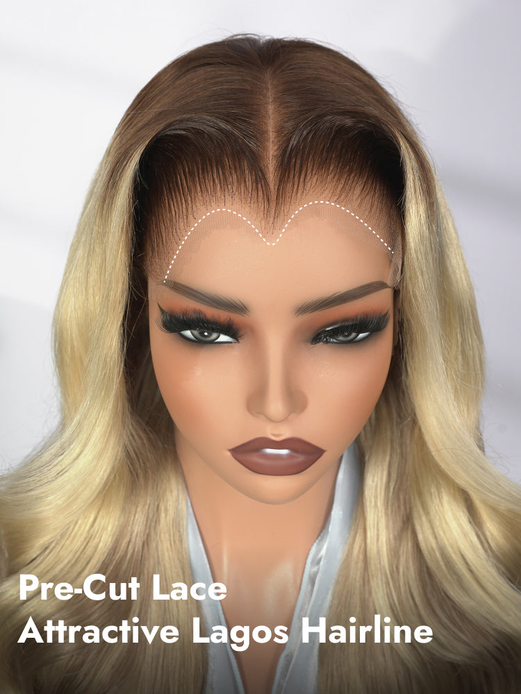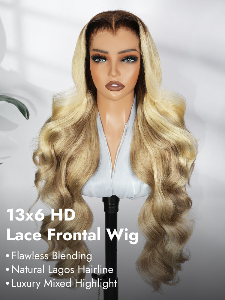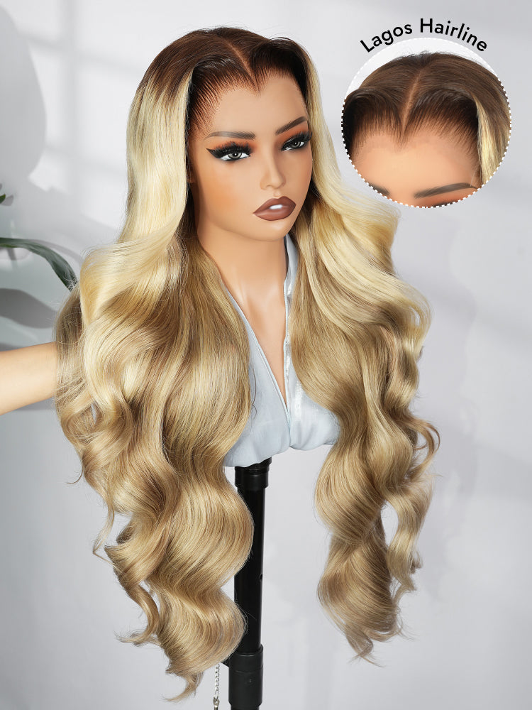 Light Brown With Blonde Highlights 13x6 Lace Frontal Lagos Hairline Wig Dark Roots