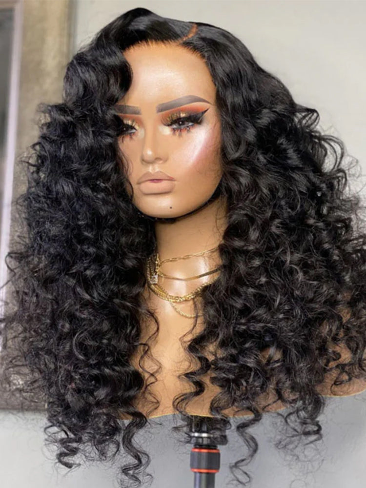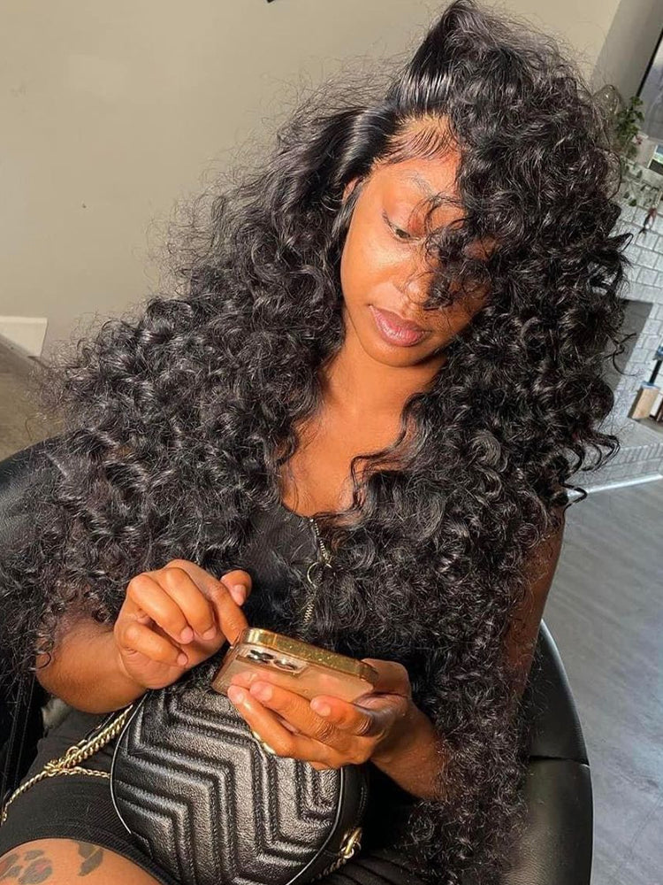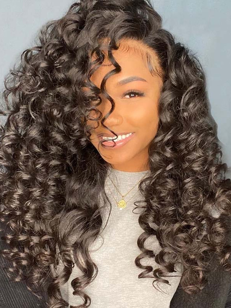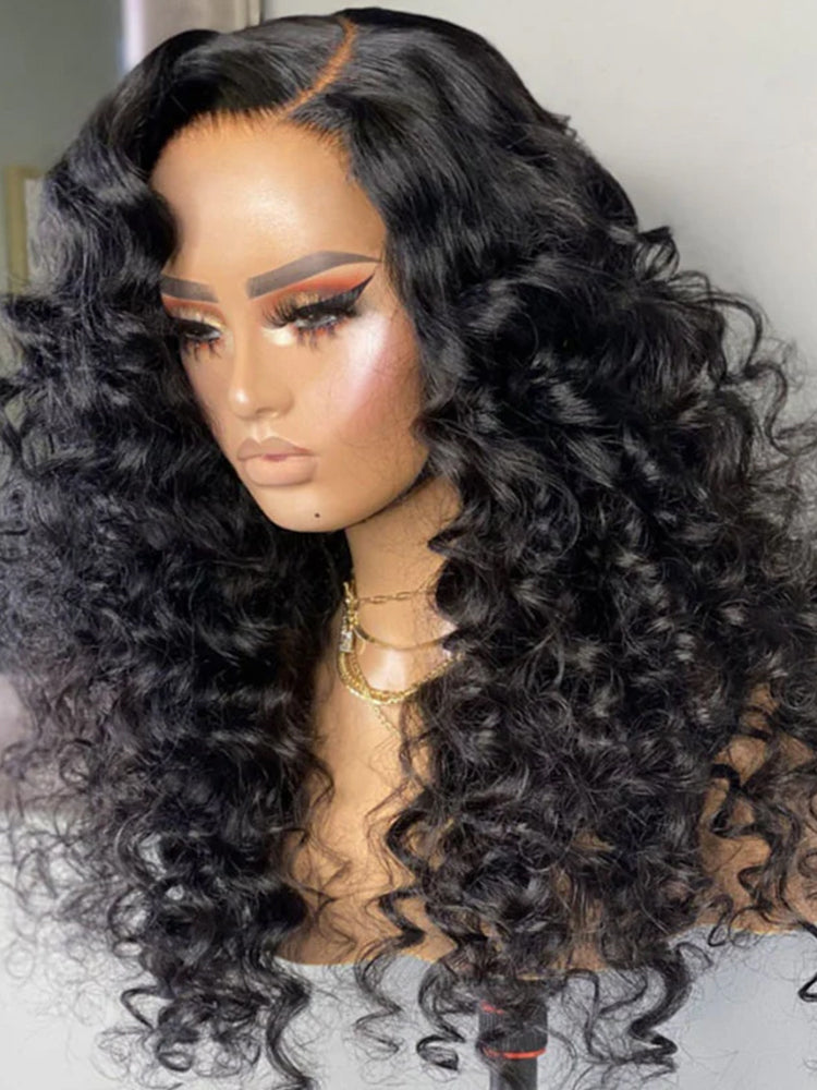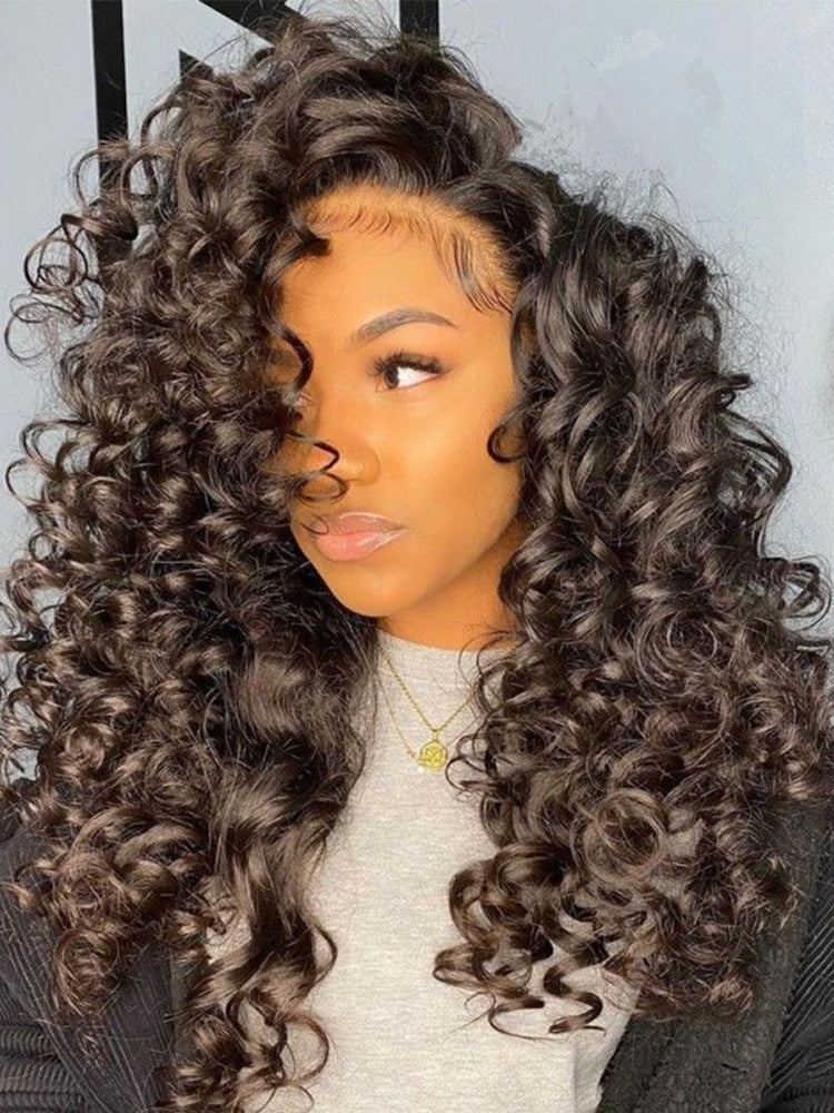 Natural Big Curly Lace Front Wigs Human Hair Spiral Curl Wigs 200% Density