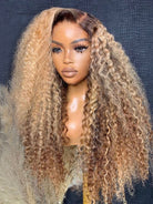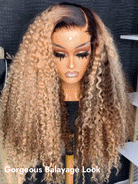 Ready And Go Wigs Honey Blonde Balayage On Brown Deep Curly Hair Wigs With Pre Cut 5*5 LY Lace