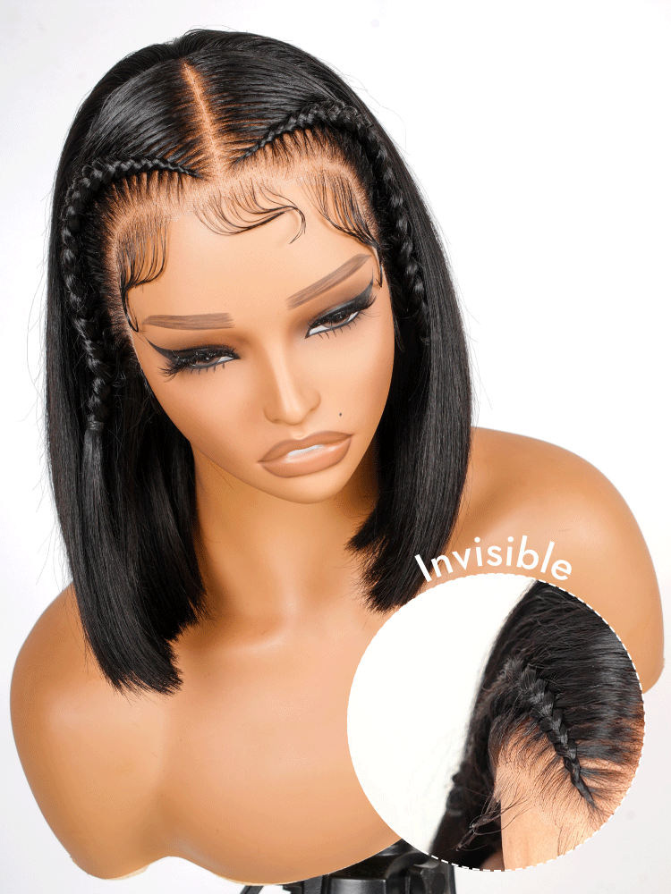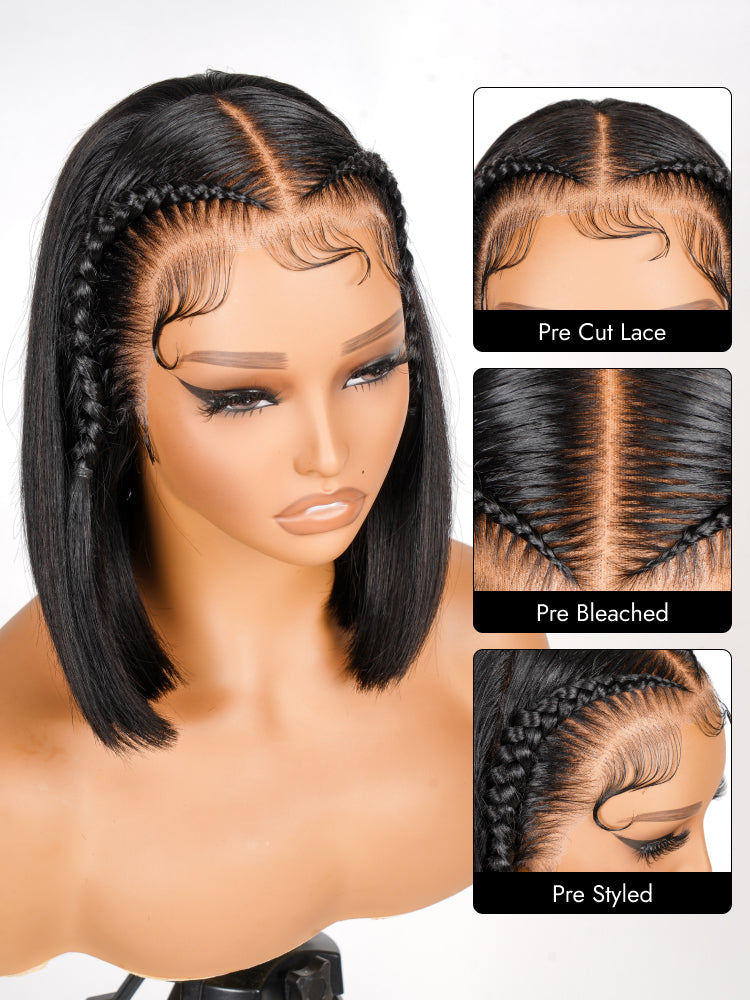Ready To Go Straight Blunt Cut Bob Wig 13x4 Front Wig With Braids In Front