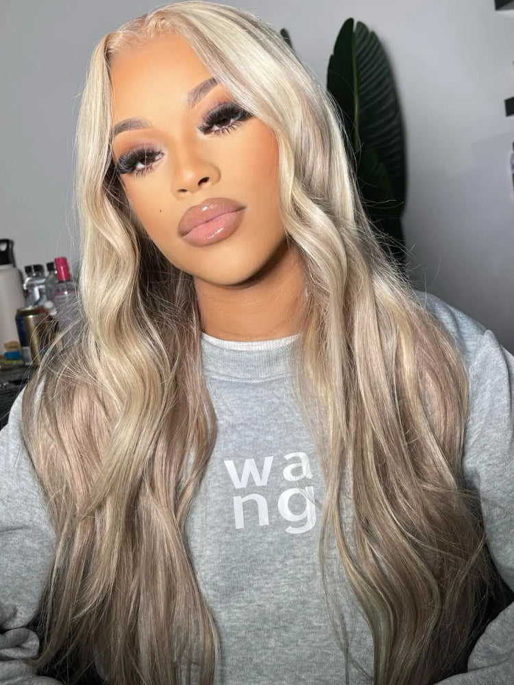 Stylist Custom #P18/613 Blonde Hair With Lowlights Human Hair Lace Wigs