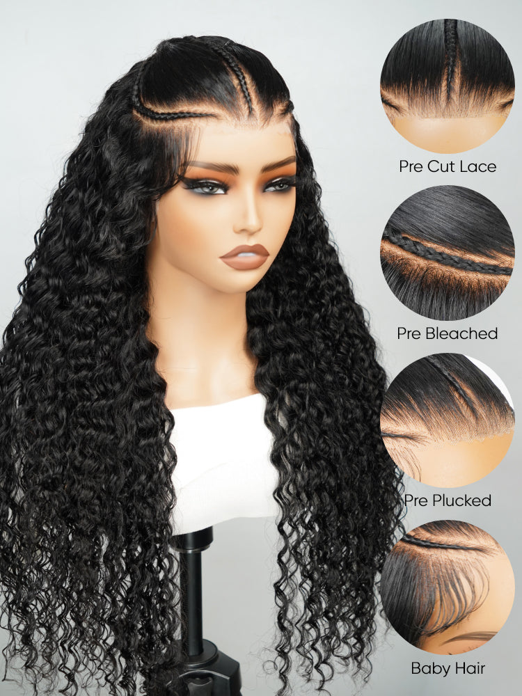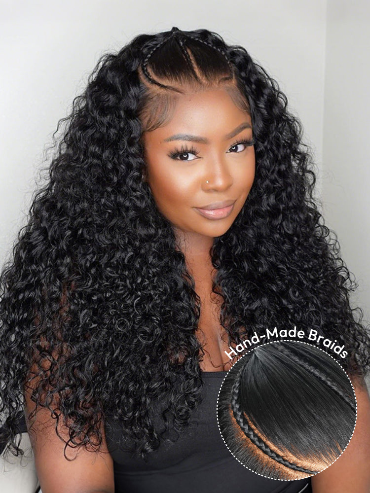 250% Density Water Wave Braiding Hair Braided 6x8 Pre-Cut Lace Wig Flash Sale