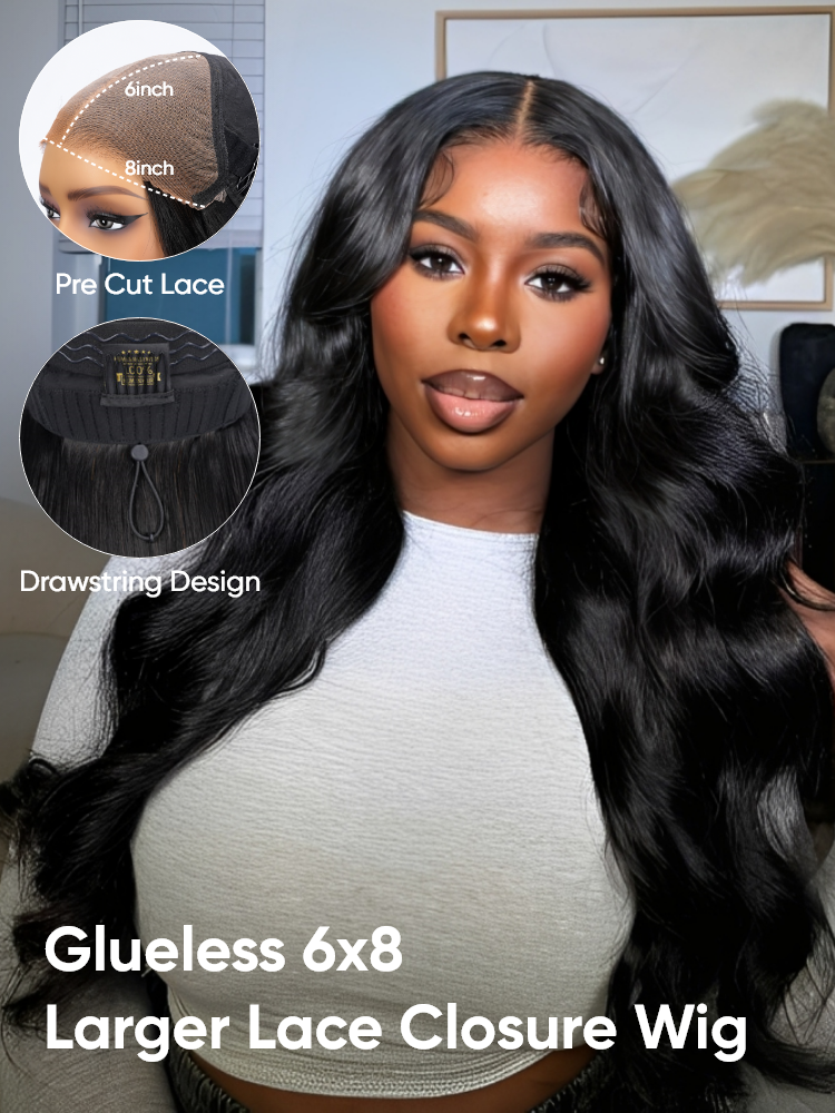 Ready And Go Wigs Body Wave Glueless 6x8 Closure Wigs With Pre-Cut Lace