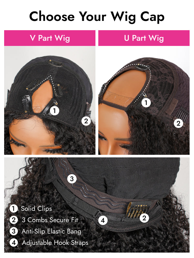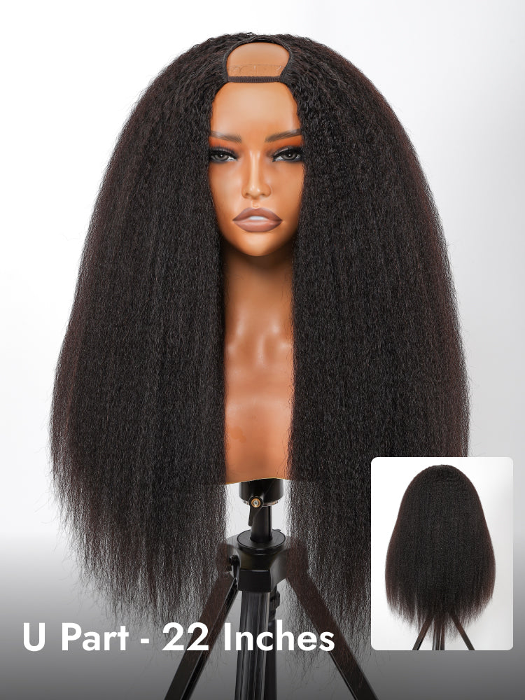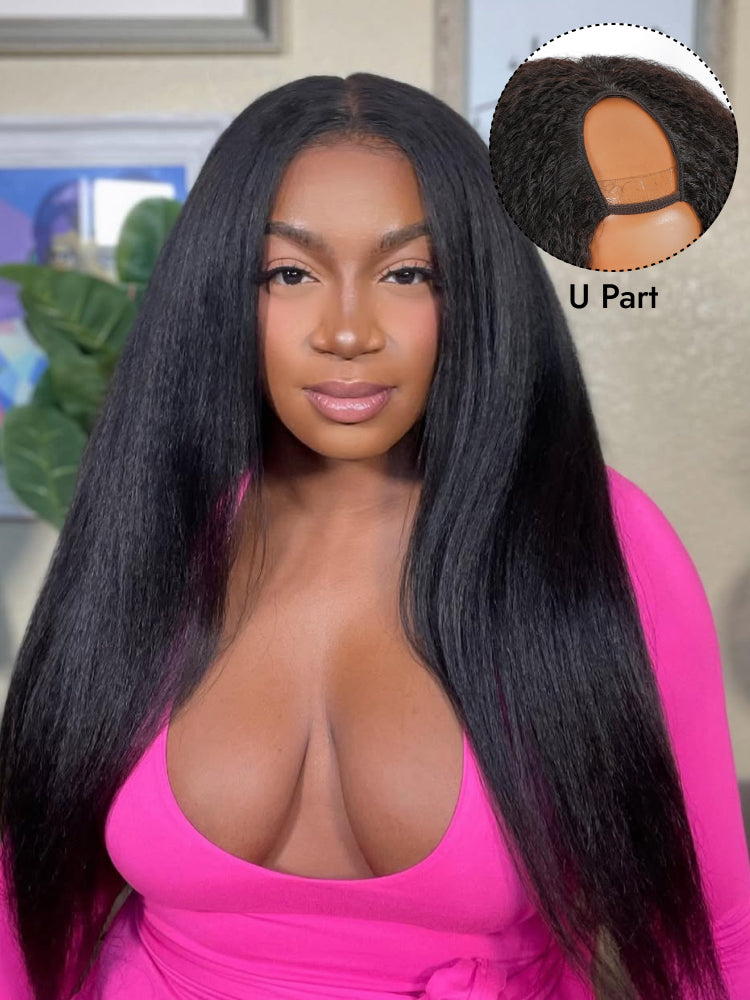 Kinky Straight U Part Wigs Human Hair Yaki V Part Wigs